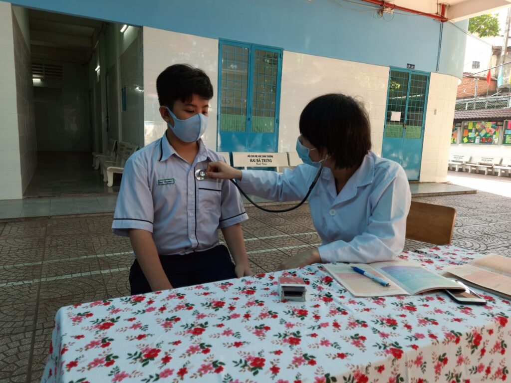 Một trong những điểm nổi bật và đặc biệt tại Trường THCS – THPT Hai Bà Trưng chính là chương trình chăm sóc sức khỏe định kì cho học sinh. Nhà trường tổ chức thường xuyên mời các y bác sỹ đến từ bệnh viện để tiến hành các cuộc thăm khám, kiểm tra và chăm sóc sức khỏe định kỳ cho học sinh. Điều này giúp đảm bảo rằng học sinh của chúng tôi được theo dõi sức khỏe một cách chính xác và kịp thời, đồng thời tạo ra một môi trường học tập an toàn và lành mạnh.